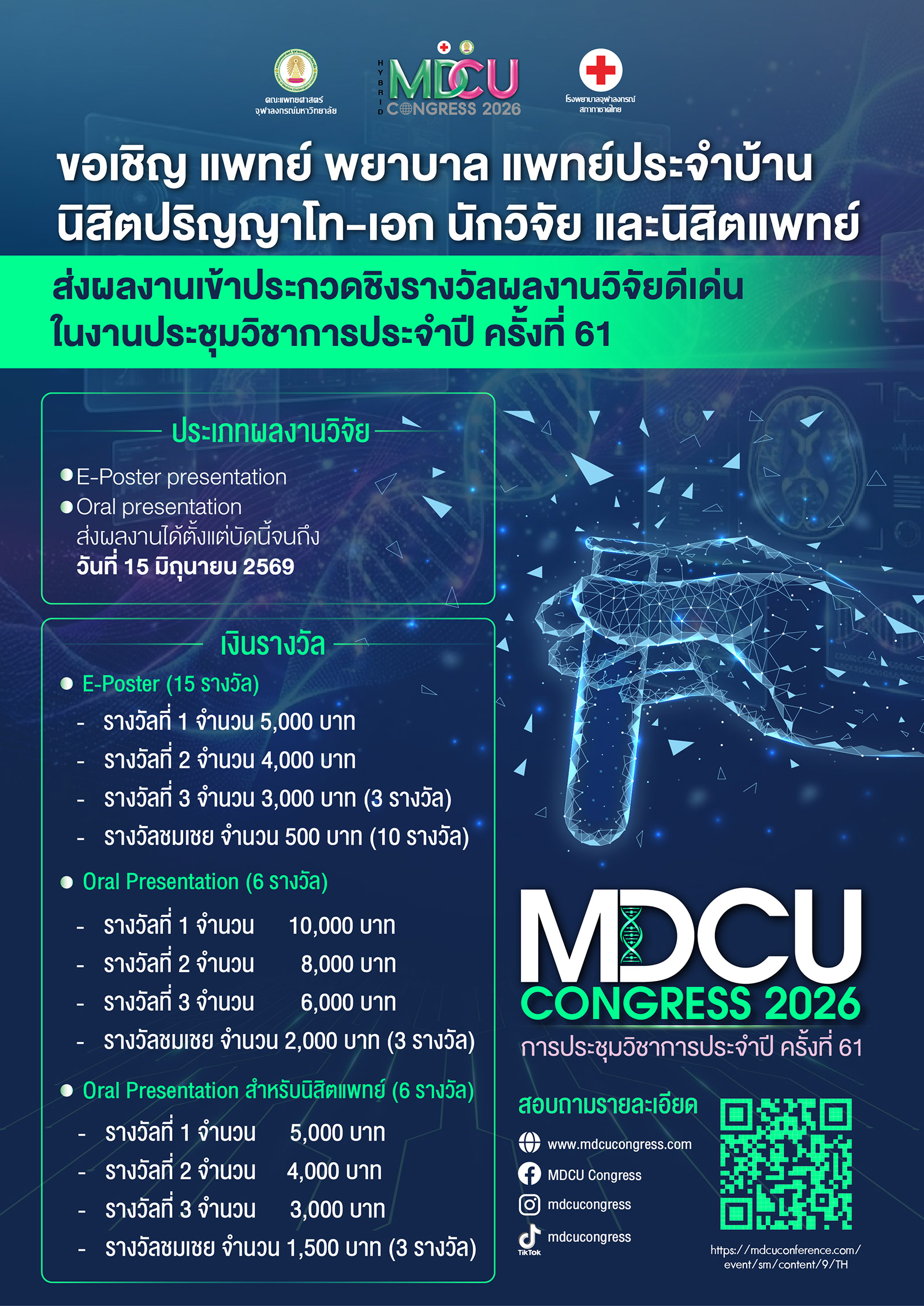 การส่งบทคัดย่อ : https://mdcuconference.com/event/sm/content/9/TH/submission